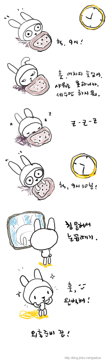 오늘, 진짜로 침묻혀서 눈꼽을 떼었다.