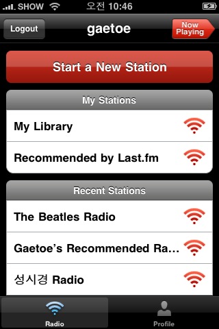 거기에 추가로(?), 그와 비슷한 종류의 음악이 끝도 없이 연결되는 Radio를 들을 수 있다.
