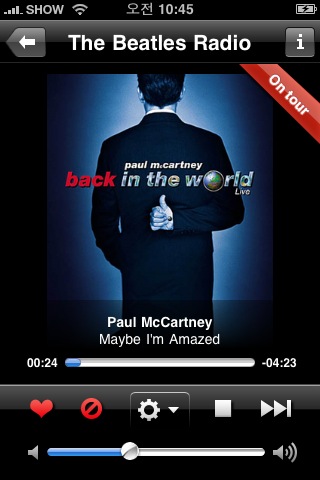 오른쪽에 On tour 표시는 현재 플레이되는 아티스트에게 투어일정이 있음을 알려주는 것.
