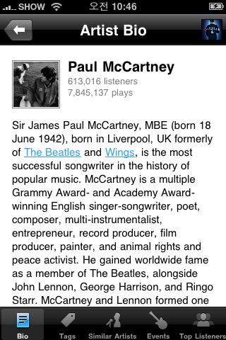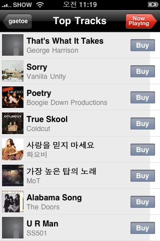 5백만 트랙의 음악을 아이폰에서 Last.fm을 통해 들을 수 있다고 한다.