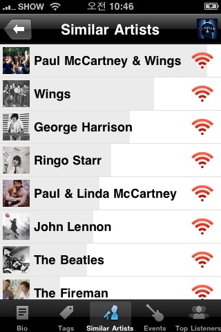 그 옆의 similar Artists를 클릭하면 관련 아티스트 라디오 목록을 볼 수 있다.