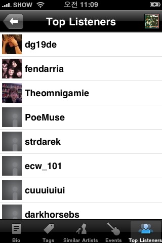 Top Listener를 클릭하면 비슷한 음악을 듣는 사람들의 목록이...