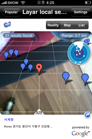 layar는 내가 있는 지점을 GPS로 인식해서,