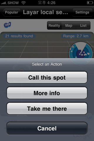 어플 아래 다양한 기능들이 있지만, 맨 위의 layar local search 만 소개하고자 한다.