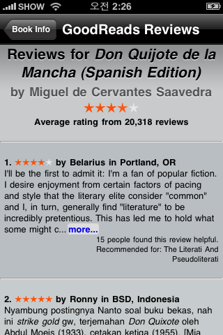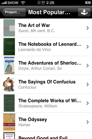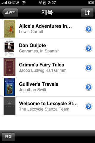 어제는 Stanza라는 아이폰용 어플리케이션을 무료로 다운받아