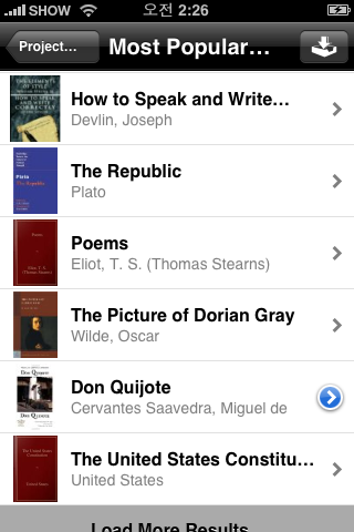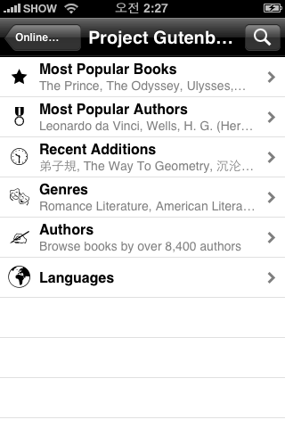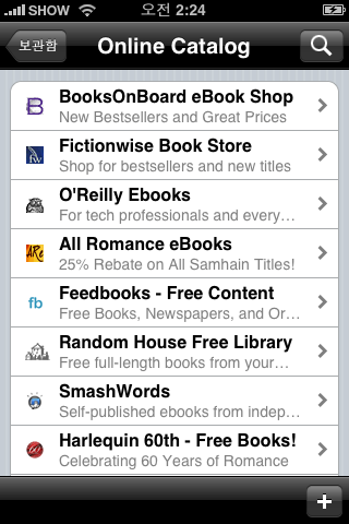 온라인 카달로그 목록에서 주목할 만한 부분은 freebooks와 Project Gutenberg.