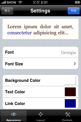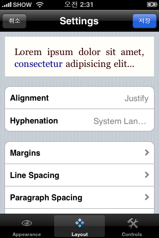 폰트와 레이아웃 등을 바꿀 수도 있는데, 기본 셋팅이 훌륭하게 되어있다.