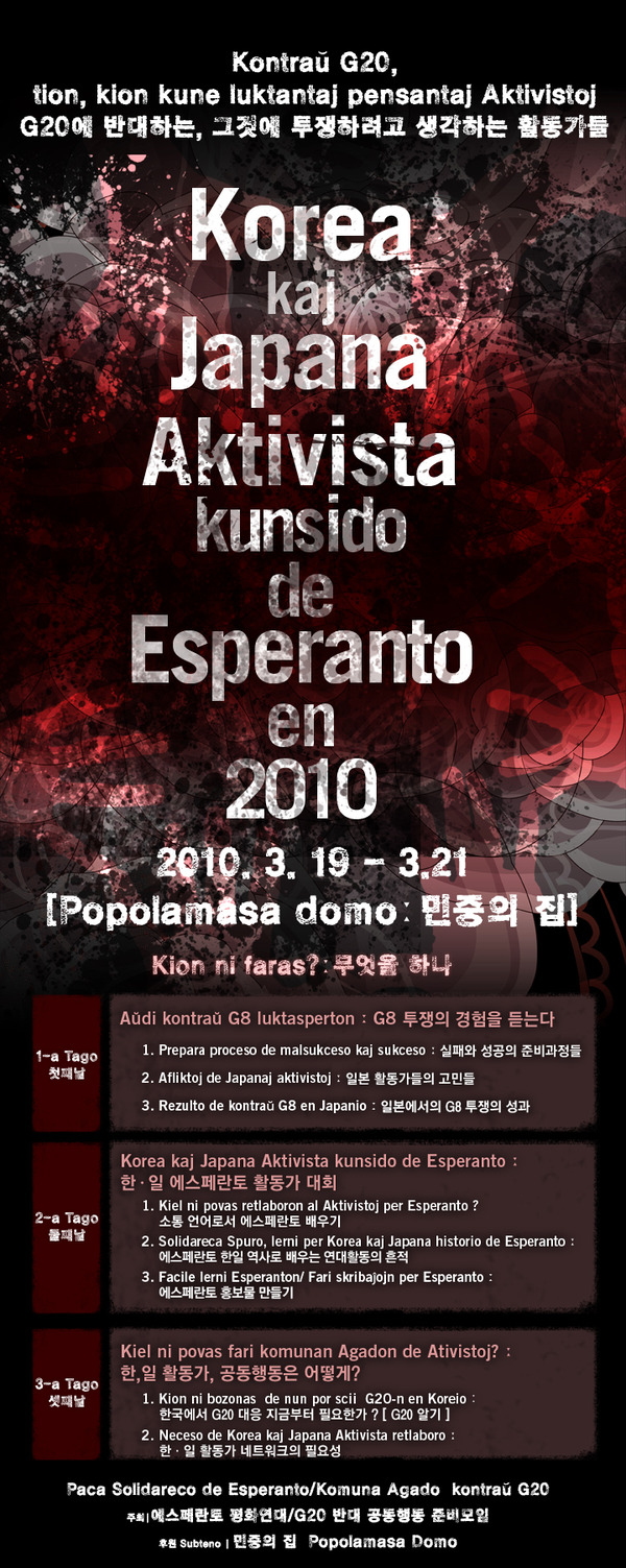 ○ 주최 : 에스페란토 평화연대, G20 반대공동행동 준비모임 http://blog.jinbo.net/noG20