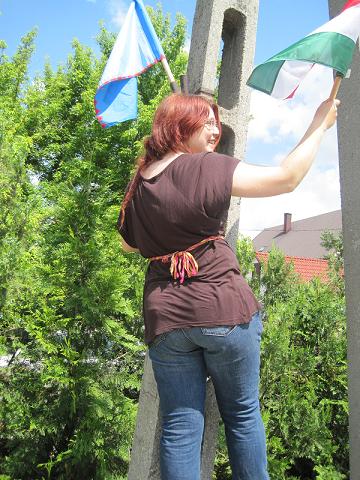 아나키스트 활동가인 마리아는 저런 걸 보고 절대 그냥 지나칠 수가 없다. 오 이런, 헝가리 국기잖아!